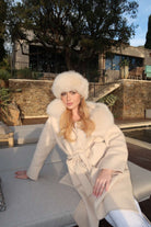 Le Cashmere Coat Long est le choix parfait pour celles qui recherchent une élégance décontractée, offrant chaleur, confort et style grâce à son design oversized et sa capuche en fourrure de renard.