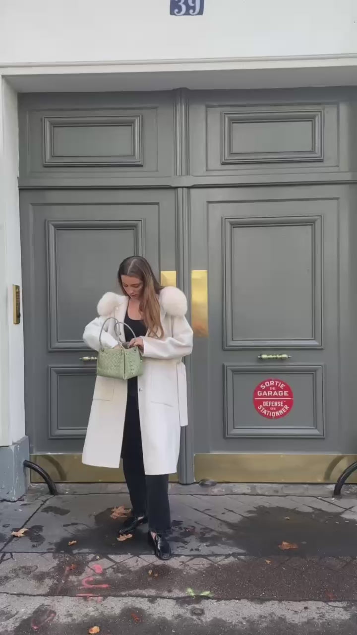 - Conseils d'entretien : Pour préserver la qualité de la laine et de la fourrure, il est recommandé de confier le nettoyage de ce manteau à un professionnel.